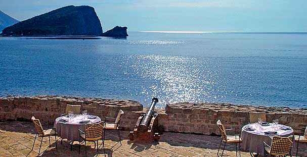 Restoran na prvom spratu čini cjelinu s prostranom terasom na istočnoj kuli i omamljujućim pogledom na ostrvo Sveti Nikola i morsku pučinu. Ono predstavlja idealno mjesto za prisna okupljanja uz vrhunsko kulinarsko umijeće i izvrsnu uslugu. Na vrhu tornja, vidikovac sa kojeg se pruža prelijep pogled na ostrvo, otvoreno more, cijelu Budvu i plaže je nezaobilazna stanica svih ljubitelja fotografije.