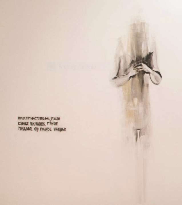 Белина ју је дуго оптерећивала: ходање кроз замишљени снег без осећаја да је непостојан. Треперење лаганог материјала везује њену истину за страх.